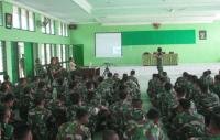 Prajurit Yonkav 6/Serbu sedang mendengarkan Ceramah Hukum bertempat di